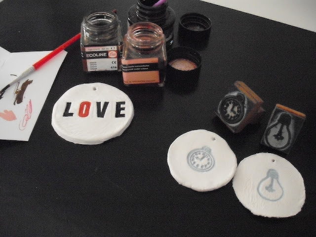 Com pasta Das fiz umas medalhas gravadas com a ajuda de carimbos. Não estão muito perfeitas mas a intenção foi só mesmo experimentar. A ideia é fazer medalhas para incorporar na decoração de natal, ainda não sei bem como e onde... e se terei tempo para o fazer!