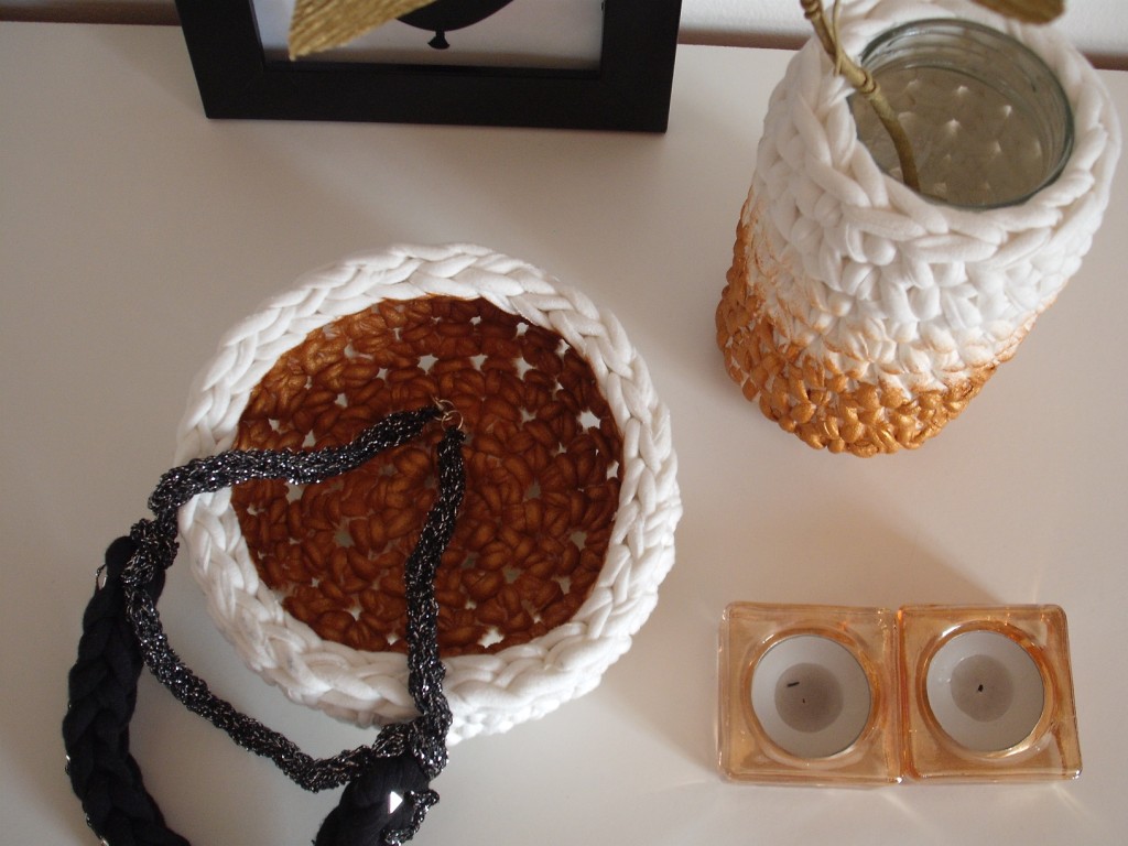 Para participarem só têm que fazer like no facebook , serem seguidoras do blog e deixarem aqui um comentário. Durante o mês de Setembro vão estar abertas as candidaturas a este fabuloso prémio da nova loja "Looping Home", composto por três peças: uma jarra e um cesto, em croché pintado à mão, de tons dourados e um colar preto e prateado com tachas.